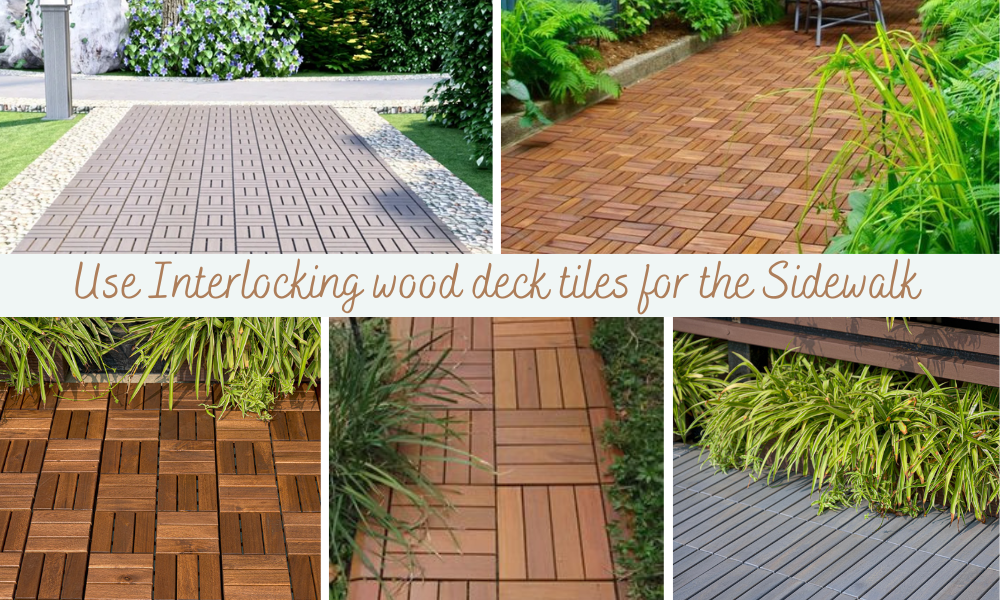 Lay interlocking wood deck tiles in a path pattern to create a charming walkway through your garden or yard. This can add structure and aesthetic appeal to your outdoor space.