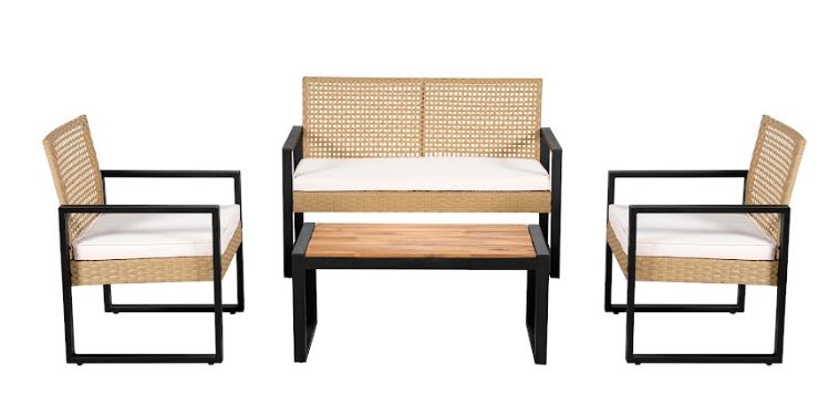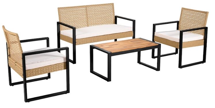 The 4-piece patio set with 5-cm thickness sponge cushions will make you feel much more comfortable. With the simple design but elegant color, weaved by the skilled rattan furniture craftsmen, the BeNK 4-piece Wicker Sofa Set's quality is controlled well by the QC team. The powder-coated steel frames are durable, sturdy, and rust-resistant, and the all-weather resin wicker which complements any decor style. 1 set includes 1 Double Chair, 2 Single Chairs, and 1 Conservation Table which is perfect for the poolside, deck, or patio, and the cushioned seats will let you and your family or friends sit back, relax and enjoy the great outdoors.