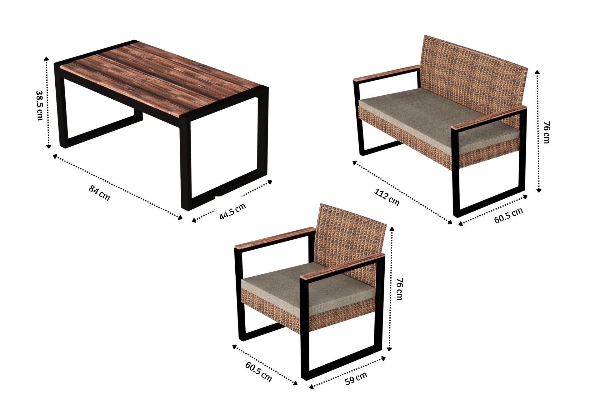 Sofa (1): 112 x 60.5 x 76 cm